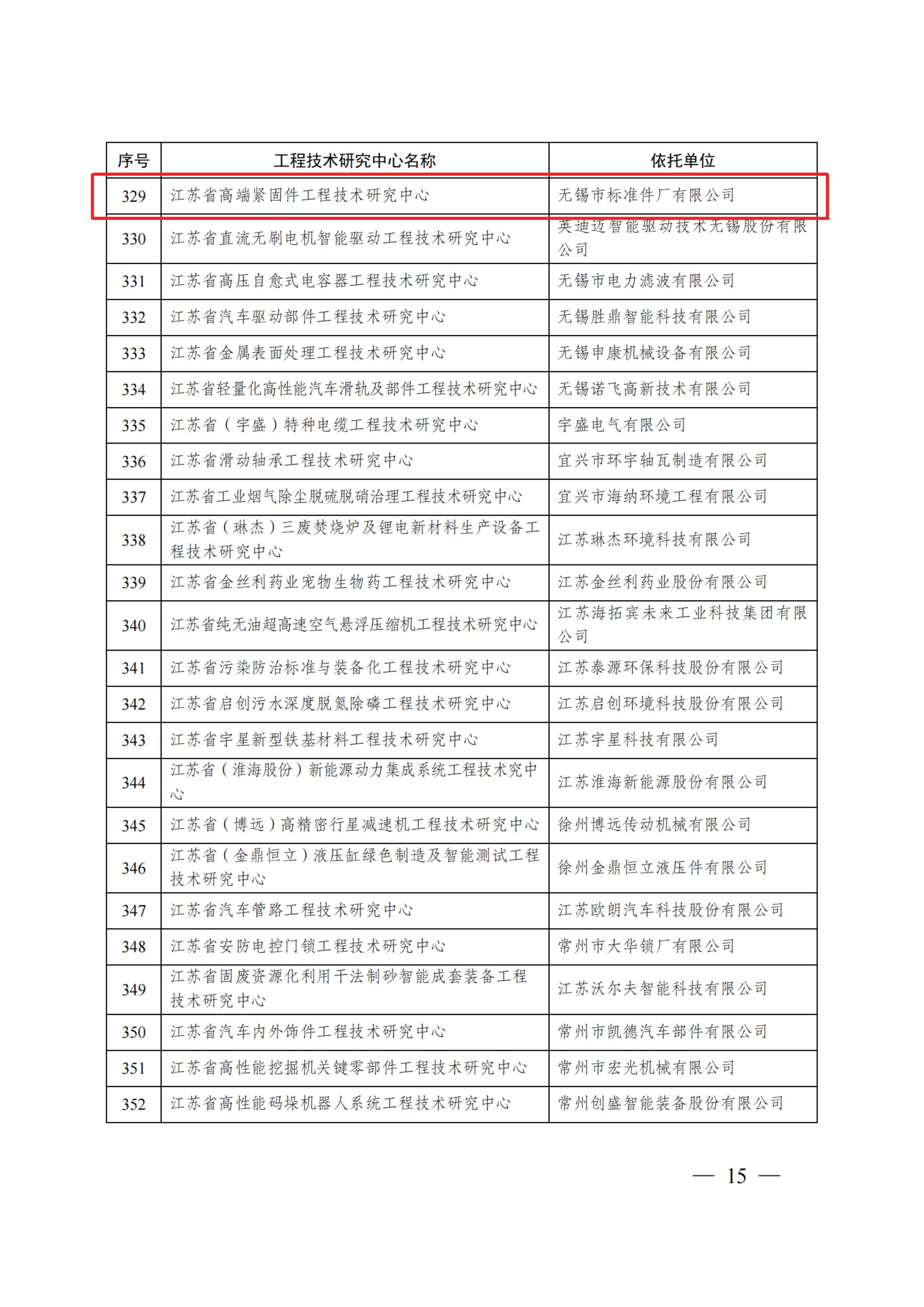 热烈庆祝公司荣获“江苏省高端紧固件工程技术研究中心”